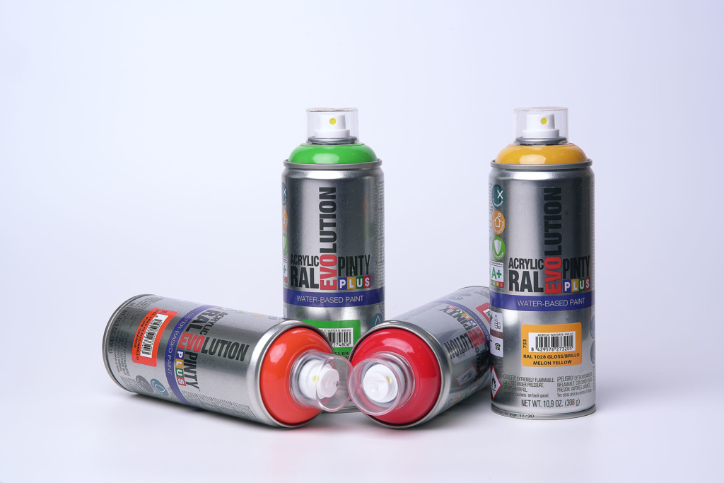 Pintyplus are constantly adding new and innovative paints to their range. Aware of an increasing consumer preference for more environmentally friendly water-based paints, the R&D department in Barcelona has been working for a while to try and produce a water-based acrylic spray paint with the technical, quality and performance of a solvent paint. Pintyplus were already the first brand in Spain to formulate a water-based spray more than 10 years ago with the launch of the aQua range, but now they’ve done it again with Evolution.